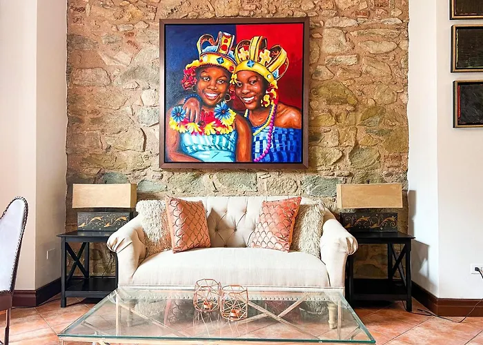 Apartamento En El Corazon De Casco Viejo Panama 11 har værelser udstyret med et skrivebord, et opholdsområde og tv og tilbyder ideel logi i Panama City. Soveværelses faciliteter inkluderer dunpuder, fjer ned puder og sengetøj. Nogle enheder indeholder separat toilet og en bruser.